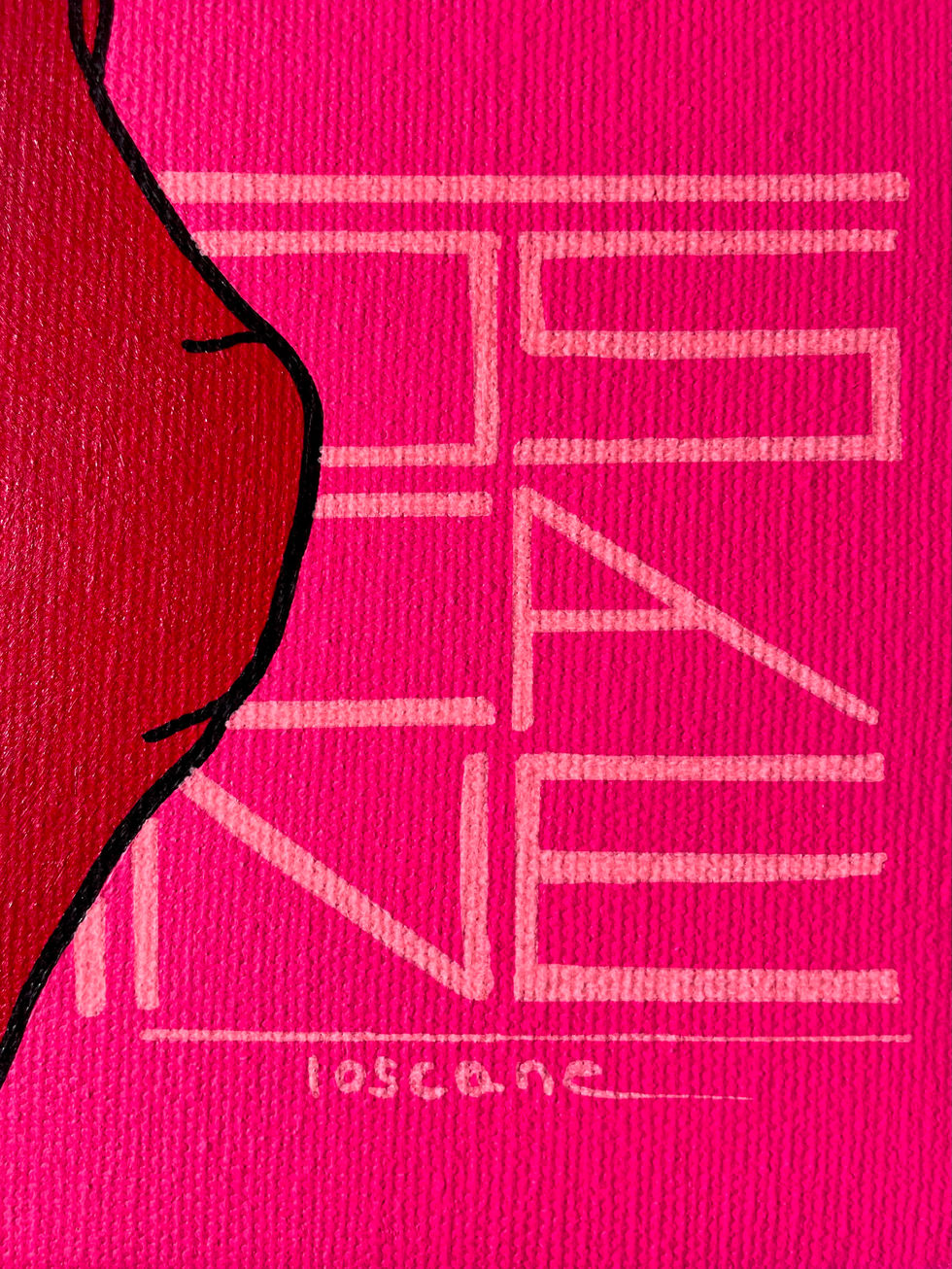 Dans un univers esthétique alliant Art Déco et minimalisme japonais, Mona nous apparaît élégamment vêtue d’une robe au dos échancré appairée de longs gants rouge velours. Plus qu’un simple clin d’œil, ce tableau invite à l’émerveillement, à vivre sa “vie en rose”. Douceur, joie, et désinvolture : ne jamais se prendre au sérieux ! La touchée d’humour s’invite dans la composition, et avec elle, un poisson dans le verre de vin de Mona.